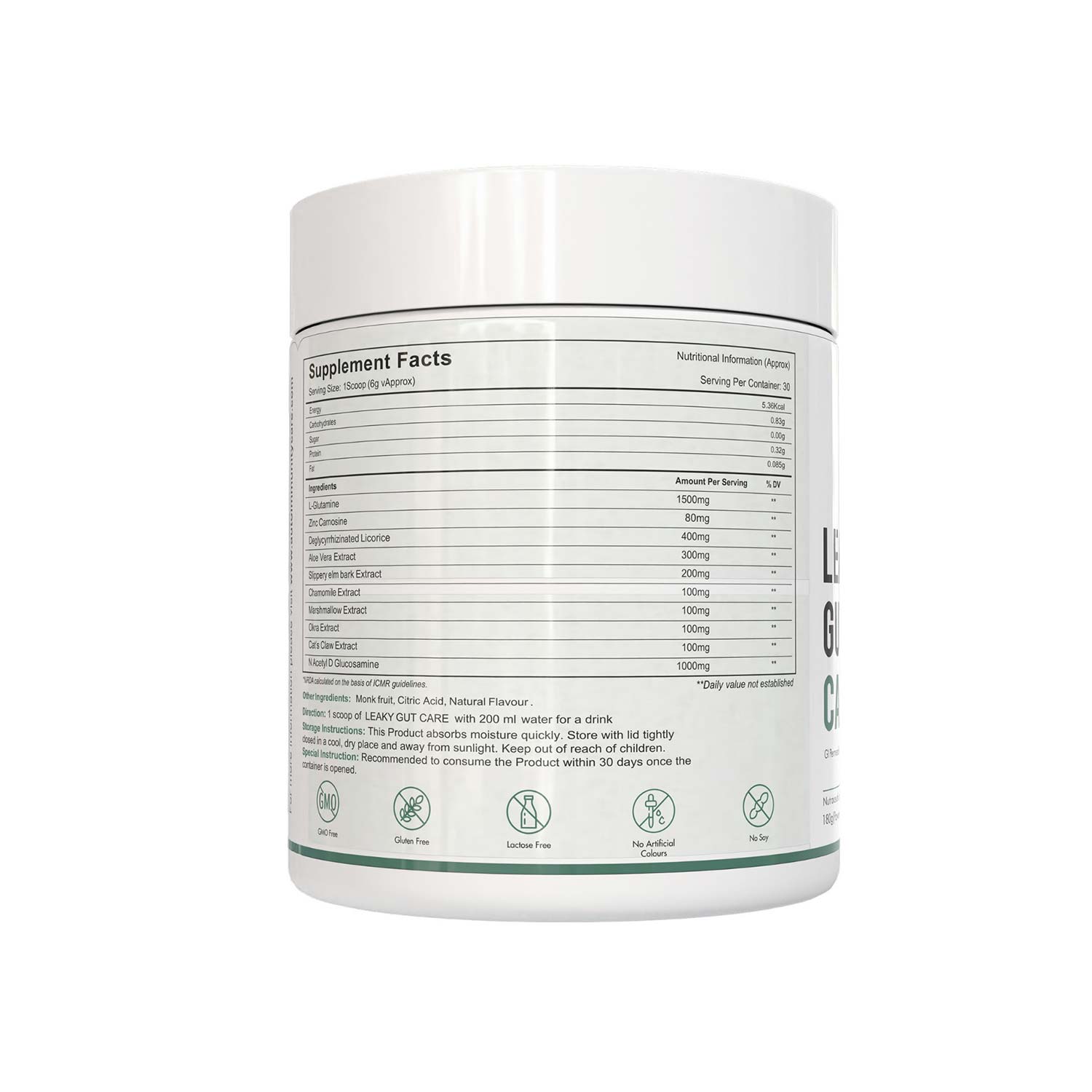 The combination of ingredients in this formula works synergistically to support the healing of a compromised gut lining (leaky gut). L-glutamine aids in repairing intestinal cells, while zinc carnosine and DGL licorice root have potential anti-inflammatory and gut-healing properties. Aloe vera and N-acetyl D-glucosamine contribute to the overall gut health and anti-inflammatory effects.