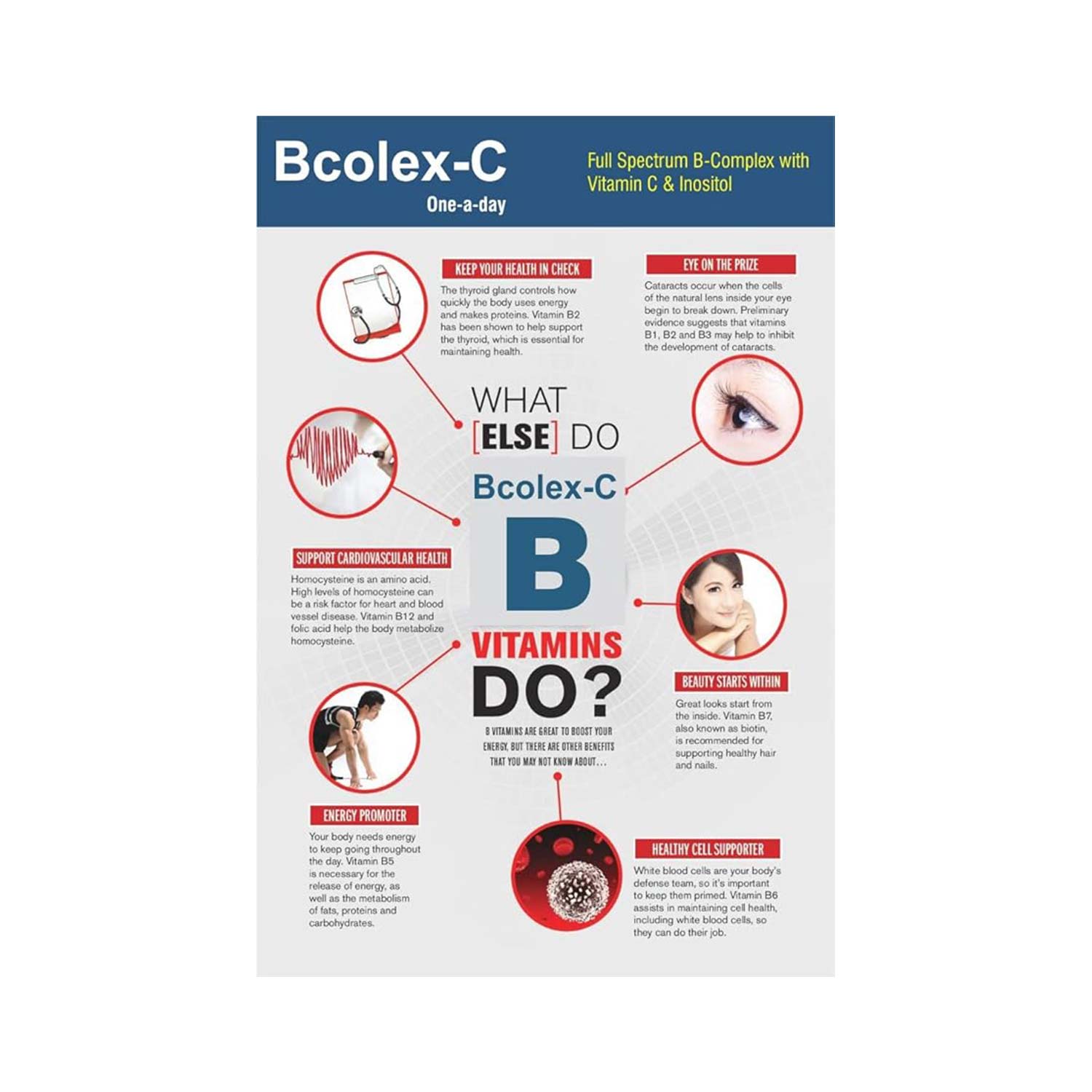 Bcolex-C is an advanced B-Complex formula enriched with Vitamin C and Inositol, designed to support daily immunity, energy levels, nervous system, skin, and hair health.